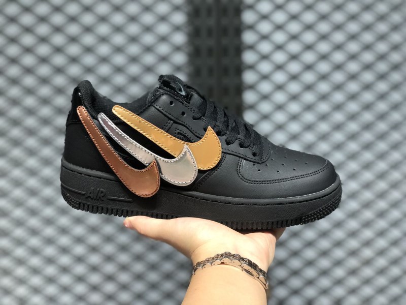 Nike Air Force 1 Low 07 Black/Gold-Black Removable Metallic Swooshes