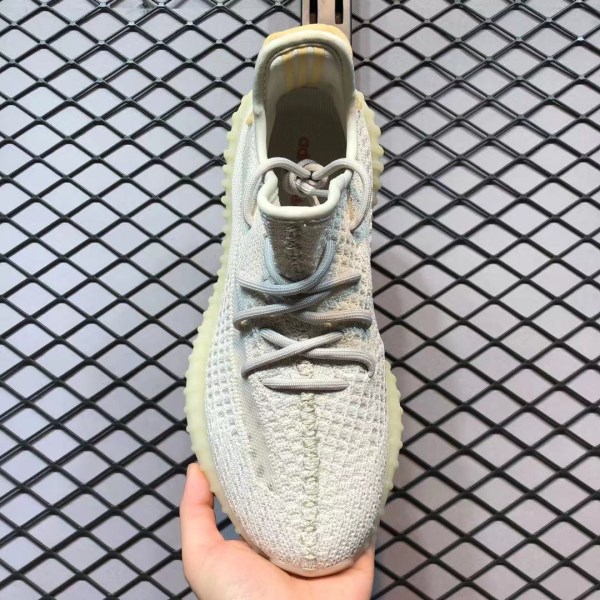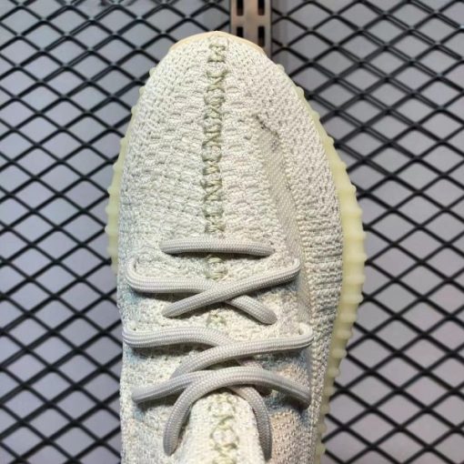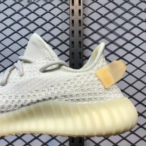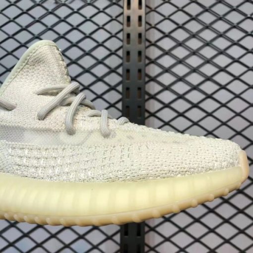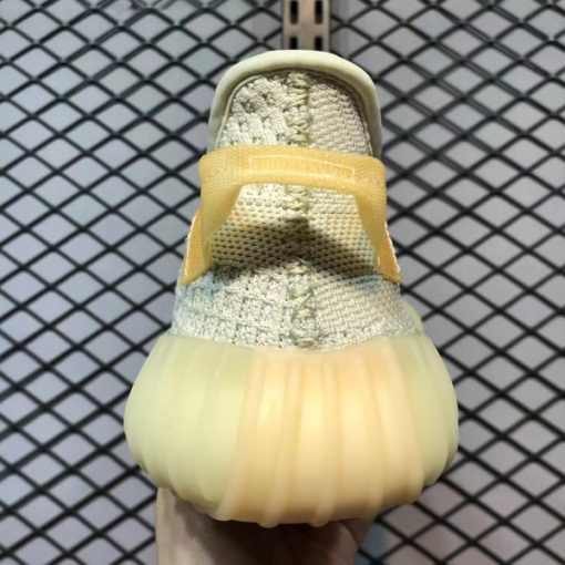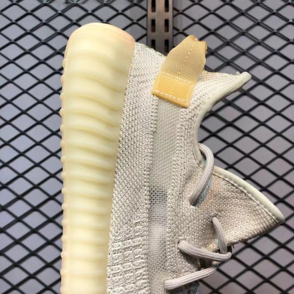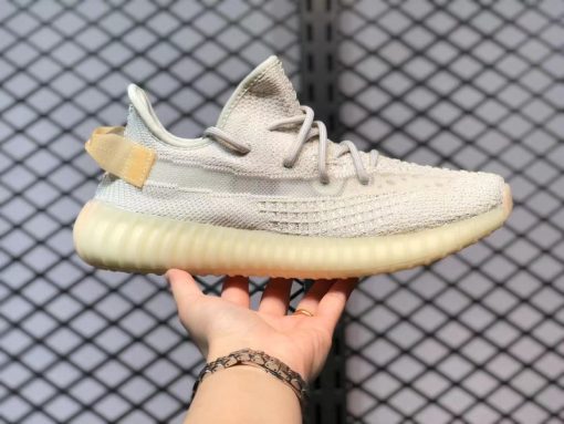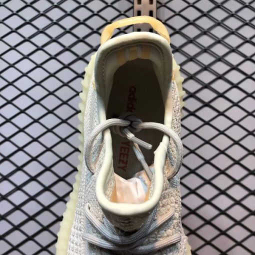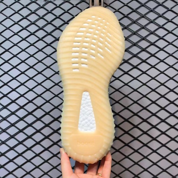 When viewed in normal light, the shoe displays its regular off-white PrimeKnit upper and base layer made of light gray laces and heel pull tabs that have some yellowing to provide a An ancient beauty. However, when UV rays hit these YEEZYs, the upper transforms into a soft pink hue and the stripes turn into amber. This is a very novel design concept.