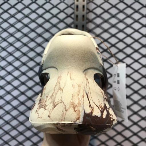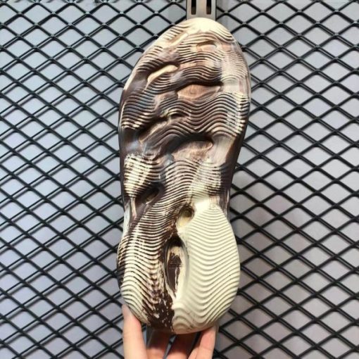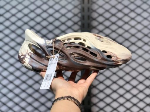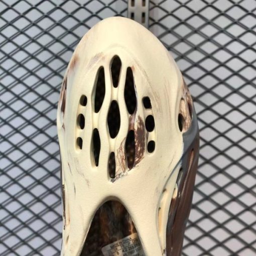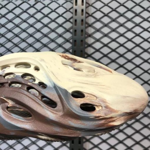 Adidas Yeezy Foam Runner’ colorway covers the lower half of the shoe with splashes of gray and brown, while the upper half is predominantly light beige.