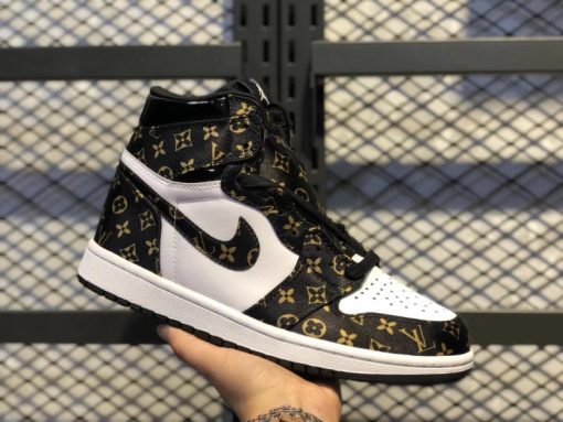 Louis Vuitton x Air Jordan 1 High White/Black-Metallic Gold
