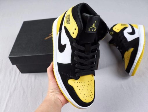 The Air Jordan 1 Mid “Yellow Toe” is a new look at the classic mid-top version of the Jordan 1. The design follows the classic pop tones of models like the “Bred Toe” Jordan 1 High, but uses vibrant yellow accents paired with a black and white base. The construction features a mix of leather and synthetic nubuck on the upper, with a standard Jordan 1 sole underneath and Jumpman logos on the tongue.