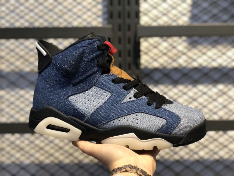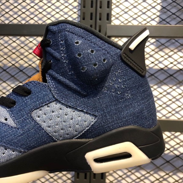 Denim material first appeared in the AJ1 that came out in 2008, and makes a new appearance in this shoe. The three-tone washed denim fabric is integrated with the black midsole, and the other parts are decorated with white, combined with the Air cushioning device on the heel.