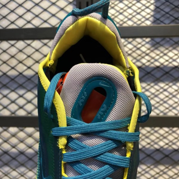 The entire pair of shoes is covered with a large area of dark green, bringing an extremely refreshing visual effect. The tongue, heel and lining are paired with white. The biggest highlight is that it adopts the same dark green design as the sideways Nike swoosh logo, and the looming effect is very low-key.