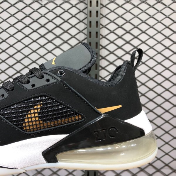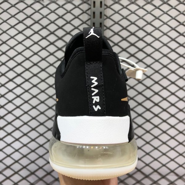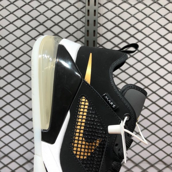 This Jordan Mars 270 Low comes dressed in a Black, Metallic Gold, Dark Smoke Grey, White and Pure Platinum. Looking closer this pair features Dark Grey on the toe box and tongues while Black nubuck lands on the overlays. In addition we have Gold on the branding, a White midsole and a translucent rubber outsole to finish the look.
