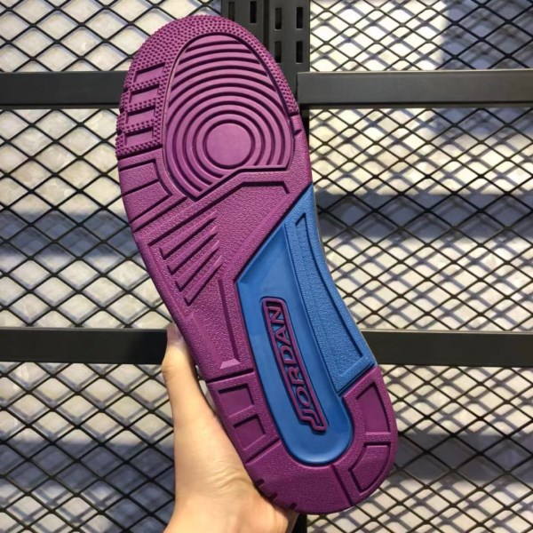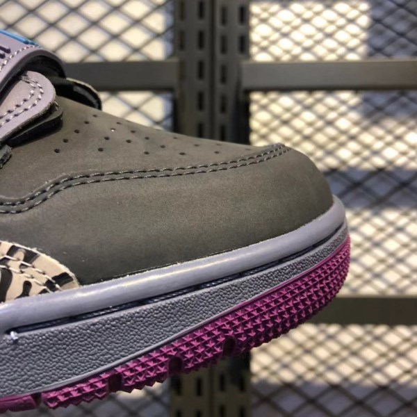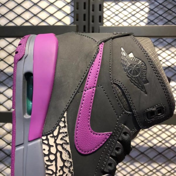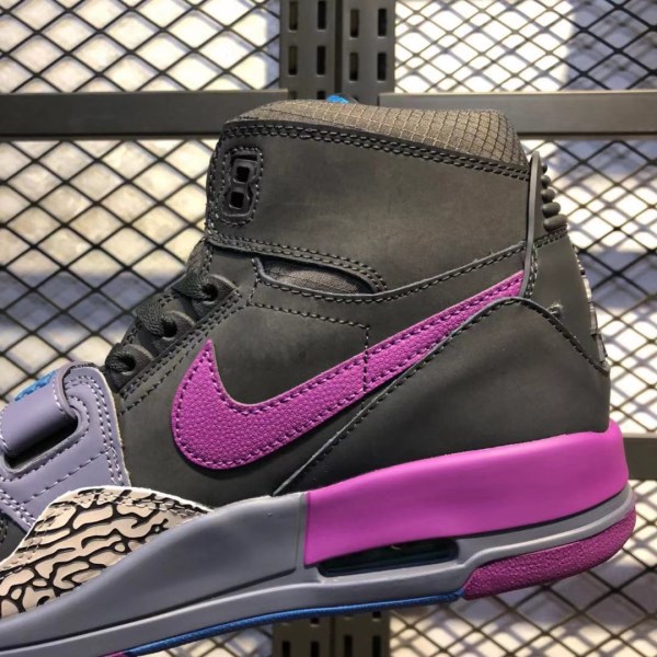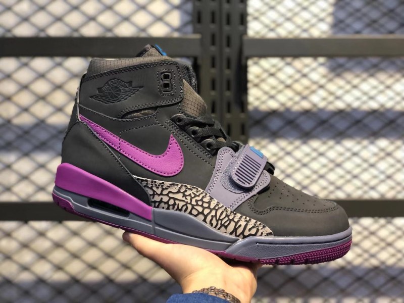 Jordan Brand’s Legacy 312 combines elements from the Air Jordan 1, Air Jordan 3, and Air Force Low for a time-honored hybrid design that now arrives in a season-appropriate dark gray and purple combination. Tones and textures are equally important here: the front half is quickly highlighted by a bold purple Swoosh and light gray forefoot straps, while the latter is achieved through the aforementioned pebbled leather on the Swoosh, and the upper has classic Elephant print. The midfoot features a nostalgic ripstop pattern on the collar. Bright blue detailing on the branding on the strap and tongue label add extra style, while switching to simpler Nike graphics. A Black Jumpman logo on the heel and a two-tone midsole complete this new offering in eye-catching fashion.