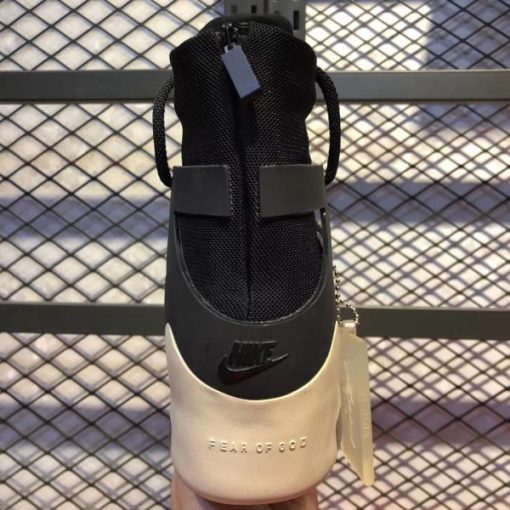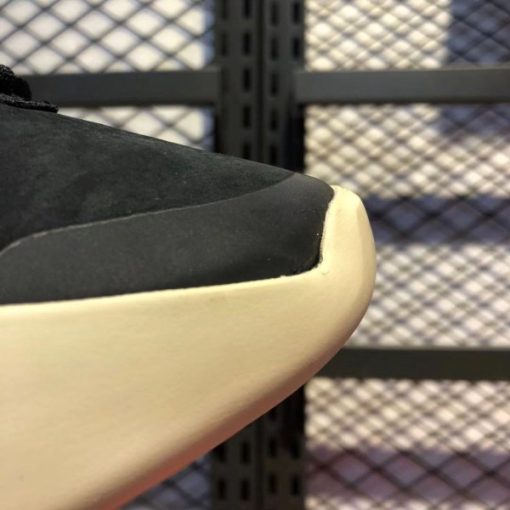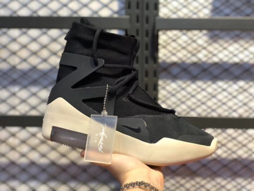 The Air Fear of God 1 ‘Black’ is one of the inaugural colorways of the performance basketball shoe made in collaboration between Nike and Jerry Lorenzo’s Fear of God. The fashion-forward silhouette uses a brand new last made expressly for the specific model, topped with a minimalist black leather upper with a TPU cage inspired by the Huarache Light. The tooling takes the form of a contrasting white cup sole with a visible double-stack Zoom heel unit.