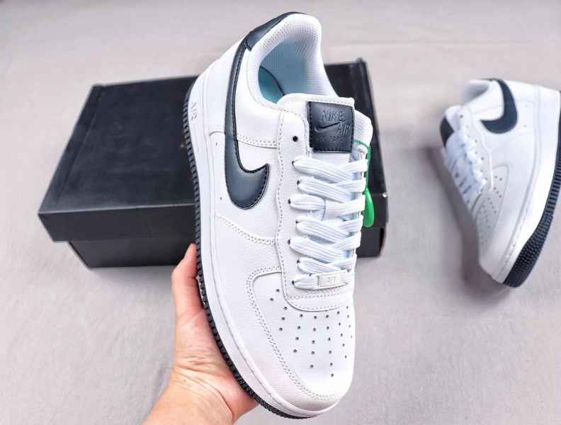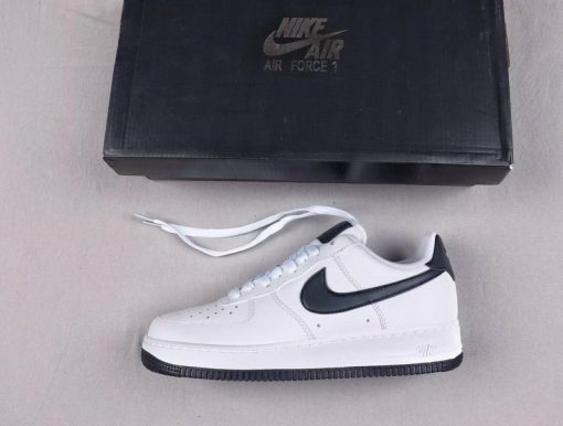 The clean white upper is contrasted with ‘Obsidian’ accents for a bold, yet understated look on this blue and white Air Force. The signature Swoosh decorates both sidewalls in a dark navy/ black, joining at the heel for a seamless finish. The heel tab is also painted in the same colour, creating an overlayed look and finished with ‘Nike Air’ branding.