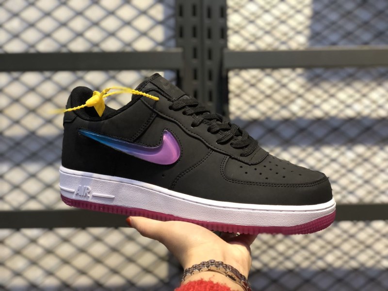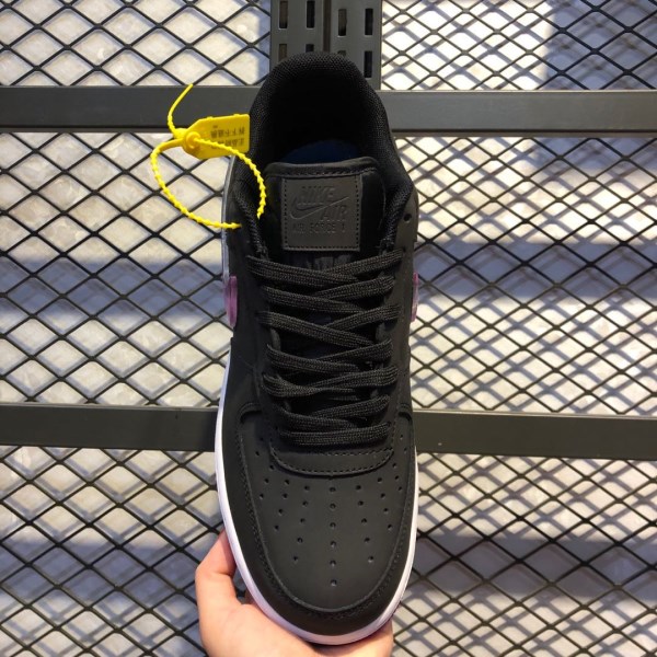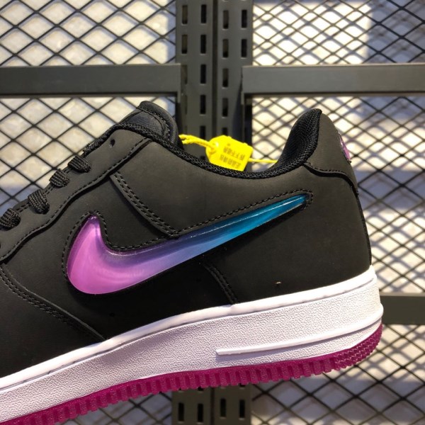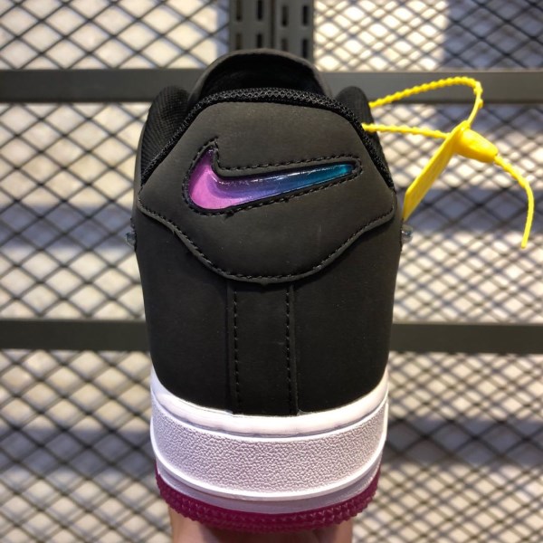 This Nike Air Force 1 Low comes dressed in a Black, Fuchsia, Lake Blue, and White color combination. Featuring a black nubuck upper with perforations at the toe and tonal branding on the tongue. Additionally, we have a Nike Swoosh with a purple to blue gradient on the panel, while the same color and design is found on the heel and insole. Finishing off the design is a translucent fuchsia outsole.