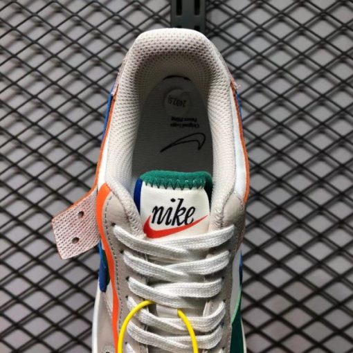 The women’s-exclusive Air Force 1 variant sees its signature exaggerated overlays take on a variety of colors that offset a clean off-white base. While grey, green, and orange leathers dominate the toe and lacestays, the hindfoot sees a suede soft coral overlay instead. Suede is also applied to the heel tab, which features Nike’s archive cursive logo. This logo can be seen on the tongue label as well. As for the profile Swooshes, blue leather is used on both sides although the lateral side sees a green Swoosh printed underneath for an overlapped look. Furthermore, a green and orange rubber overlay adds additional pops of color to a stark white midsole. A gold Swoosh lace dubrae and insoles featuring the logo’s debut year are the final touches that mark the model’s placement within the “First Use” pack.