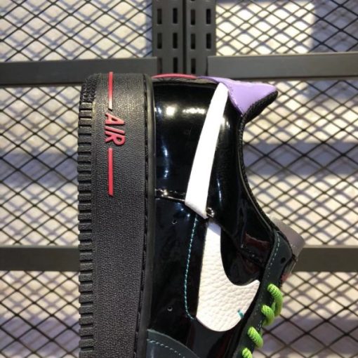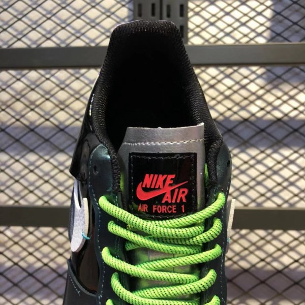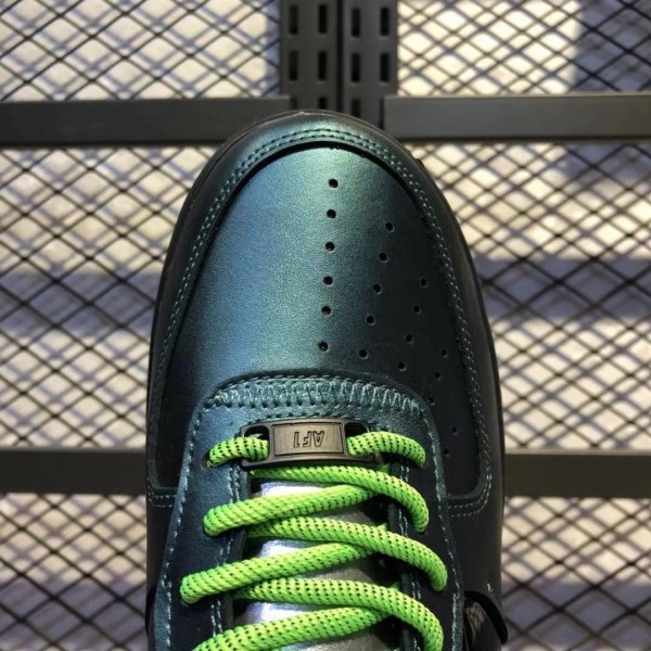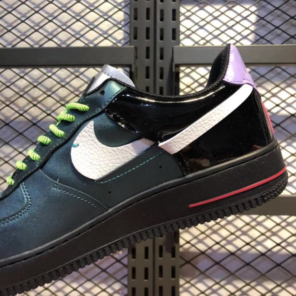 The color design of the entire pair of shoes is very stunning, and the broken hook design of the swoosh on the side of the shoe is the biggest highlight of this pair of shoes. The dark upper is made of gray and green holographic leather materials, and the black patent belt on the heel has a rainbow holographic effect. Fluorescent green laces and purple heels are the finishing touches to this pair of shoes, echoing the sea clown color scheme.