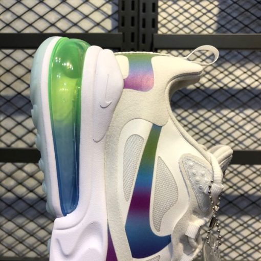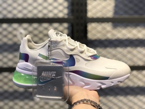Part of a larger Nike Sportswear collection celebrating the 30th anniversary of the Air Max 90, the Air Max 270 React 20 “Bubbles” features a design inspired by bubble wrap. As a result, clear plastic that mimics the look of insulation is applied to the sneakers’ eyelets and tongues. The remainder of the upper is constructed from White textile with tonal seamless overlays and iridescent detailing on the Swoosh, forefoot, and heel.