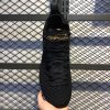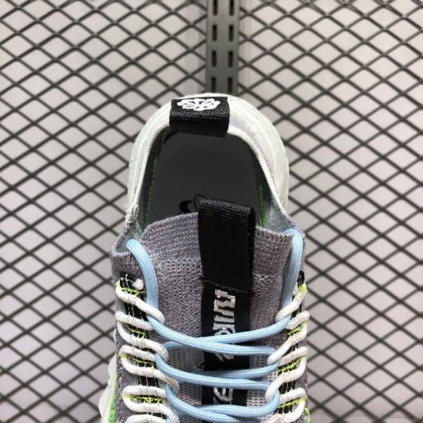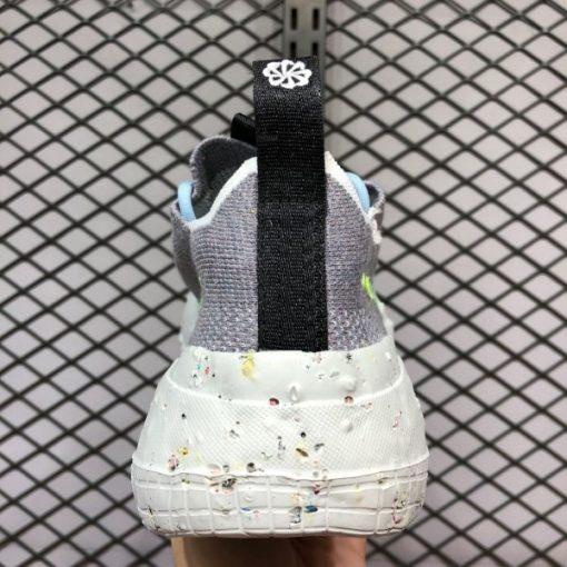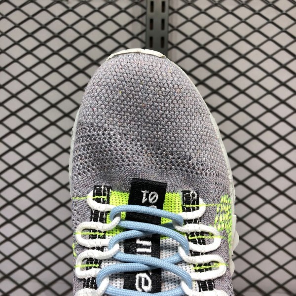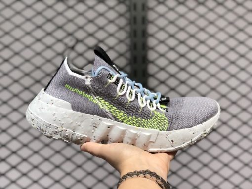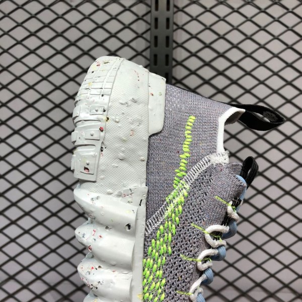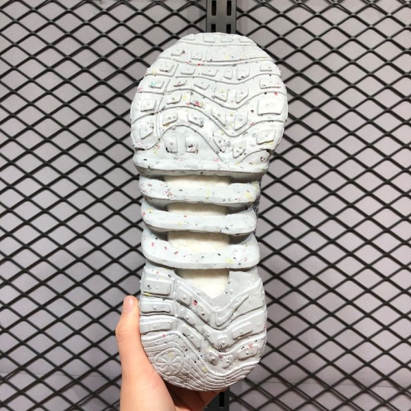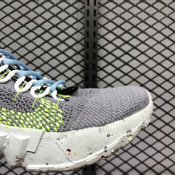 The innovative Space Hippie 01 features an interesting product backstory, as it was constructed using discarded scraps or “space junk” from Nike’s cutting room floor. Breathable yet durable, the woven grey sock-like upper features a contrasting dotted Volt Swoosh on either side. Despite its build, a traditional lacing system allows for even more lockdown support. Black nylon pull tabs appear on both the tongue and heel, and a black bungee cord-like setup assists in holding the aforementioned lacing system in place. The FoamX midsole features a speckled design. Recycled materials can be found on the outsole.