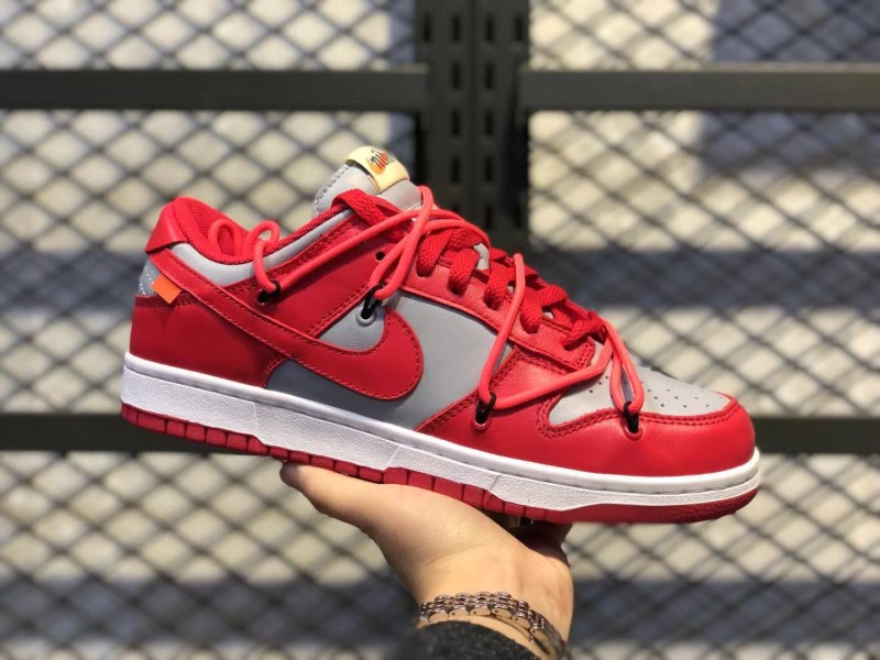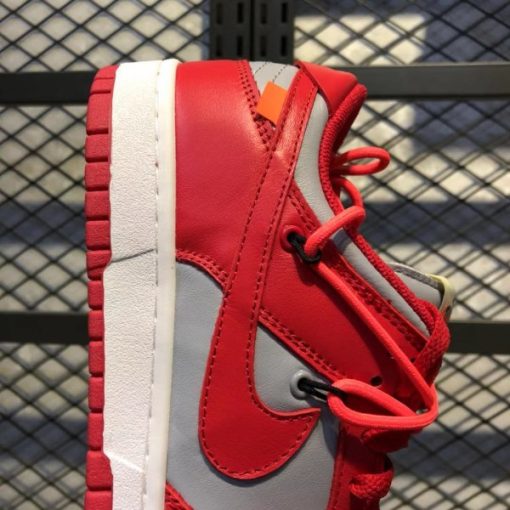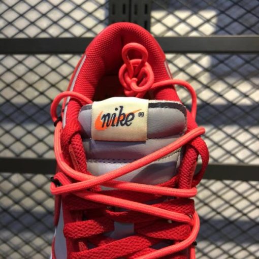 Not too far from ordinary, the pair blends iconic palettes with some of Off-White’s more noticeable additions: zip ties dressed in full white hang right off the edge of the bright red lace unit with orange accents taking seat at the small hang tab at the sides as well as the branding of the tongue. Boldface type
